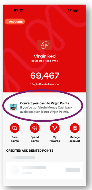 How can I convert my Virgin Money cashback into Virgin Points? Follow